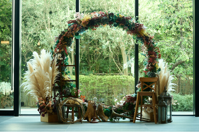 エントランスに踏み入ると、この景色。ポテルのロビーを鮮やかに彩る、季節の「まあるい」装飾です。「ポテル」と名付けた理由は「ご縁」の“まる”という意味があります。