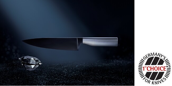 新発売の「アルティメット」は、WMFが誇る最新精密技術(パフォーマンスカット)と高性能なダイヤモンドライクカーボンコーティング(DLC)との融合により生まれた、使い続けても摩耗しない究極のナイフシリーズです。所作一つ一つに凛とした美が宿る漆黒の美しいブレードと、いつまでも鋭さが失われないWMFのテクノロジーが生み出す、時を超えて研ぎ澄まされた至高の一本です。