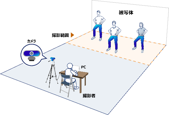 本実証実験では、富士通Japanの「Fujitsu ウェルネス運動支援サービス」(以下、「ウェルネス運動支援サービス」)を活用し、港区様が実施している体力測定のうち、握力測定を除いた7項目(長座体前屈、開眼片脚立ち、タイムアップアンドゴーテスト、5m歩行テスト、椅子立ち上がりテスト(秒/5回)、タンデム歩行、ファンクショナルリーチテスト)においてAIによる体力測定および解析への対応を目指します。