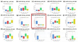 今回我々は、早期乳癌の乳腺組織を用いて、脳/肺/肝/骨単独再発を来した患者4群に分けた。乳癌脳転移との関連が報告されている15種類のマイクロRNAを発現比較したところ、hsa-miR-155-5pが脳単独再発群で有意に発現が上昇していた(p<0.001)。