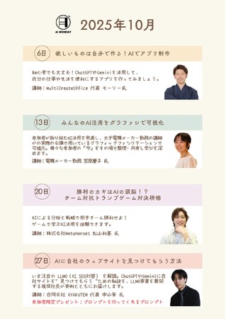 【毎週月曜はAIで世界が広がる日】生成AIを実践的に学べる「AI MONDAY」2025年10月の開催スケジュールを公開