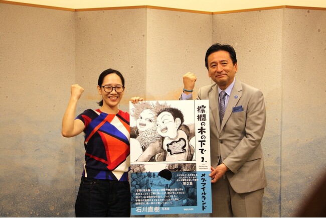9月22日、佐賀県庁にて作者・メグマイルランド氏が山口祥義知事を表敬訪問しました。山口知事は「作品を読んで自分の子供の頃を思い出した。言葉にできなかったあの頃を思い、懐かしさを感じた。漫画の世界を通して佐賀について発信してほしい」と激励。メグマイルランド氏は「こうして佐賀で作品を紹介できて感慨深い。佐賀の人なら知っている風景もでてくるので、そこにも注目して楽しんでほしい」と語りました。