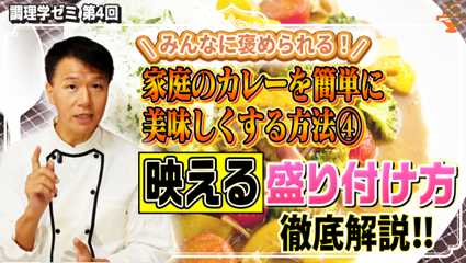 テレビでお馴染みのカレー専門のコンサルティング会社である株式会社カレー総合研究所(所長:井上岳久/東京都渋谷区)は、傘下のカレーのプロフェッショナル育成機関「カレー大學」の学長、井上岳久がYouTubeチャンネル「カレー大學学長ゼミ」開設し、「調理学ゼミ/みんなに褒められる!家カレーを簡単においしくする秘訣4.映える!盛り付け方」を公開しました。