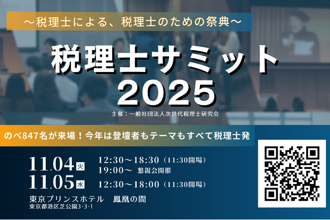 株式会社M&A総合研究所(本社:東京都千代田区、代表取締役社長:佐上 峻作、以下:当社)は、2025年11月4日(火)・5日(水)の2日間、税理士サミット2025に協賛し、ブース出展いたします。