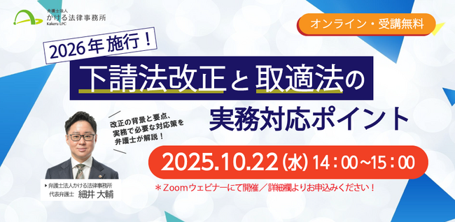 【弁護士による無料セミナー】「2026年施行!下請法改正と取適法の実務対応ポイント」10月22日オンライン開催