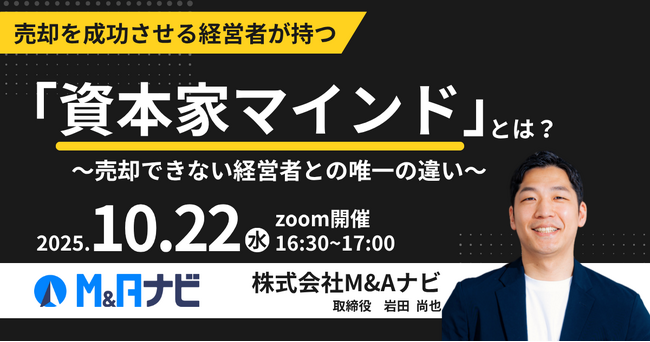 【10/22開催|無料セミナー】売却を成功させる経営者が持つ「資本家マインド」とは?を開催いたします。
