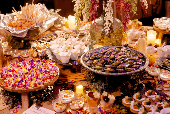 ※試食はサイドの提供ラインでご用意し、中央テーブルの料理は撮影用(展示専用)です。