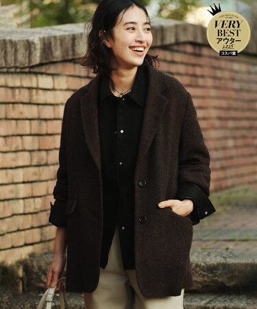 ジャコットとは、ジャケットとコートを組み合わせた造語で、ジャケットのように羽織れて、コートのように温かい中間アウターです。近年、気温が安定しない秋~冬の時期にアウターとして着られる注目のアイテムとなっています。今回、「ロペピクニック」のテーラードジャコットが、VERY11月号に掲載されている「VERY BESTアウター大賞2025 コスパ賞」にて受賞しました。本アイテムは、表面感のあるこだわりのネップツイードと、軽やかに羽織れる”軽量さ”が魅力で、マニッシュなアイテムながらも、女性らしい程よいサイジングでオフィスや日常にも着られるシーンレスなジャコットに仕上げています。