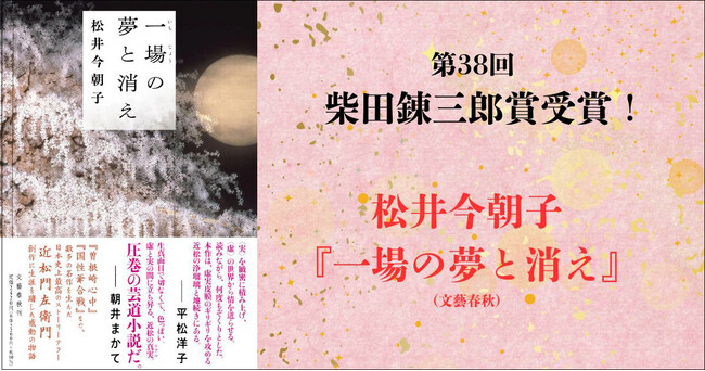 株式会社文藝春秋(本社:東京都千代田区 社長:飯窪成幸)が2024年8月に刊行した、松井今朝子さんの長編小説『一場(いちじょう)の夢と消え』が、第38回柴田錬三郎賞を受賞しました。