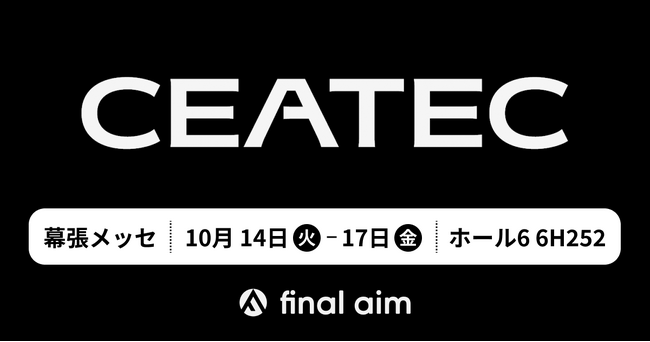 株式会社Final Aim(本社:米国デラウェア州 / 代表取締役社長:朝倉 雅文、取締役:横井 康秀、以下 Final Aim)は、2025年10月14日(火)~17日(金)に千葉市美浜区・幕張メッセにて開催される「CEATEC 2025」に出展します。