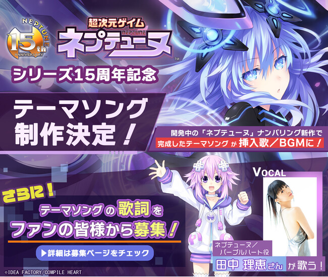 「ネプテューヌ」シリーズ15周年記念 テーマソング制作決定! ネプテューヌ役・田中理恵さんが歌う! ファンの皆様から歌詞の募集も開始!