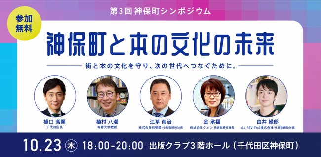 イベント名:第3回神保町シンポジウム「神保町と本の文化の未来」日 時:2025年10月23日(木)18:00~20:00