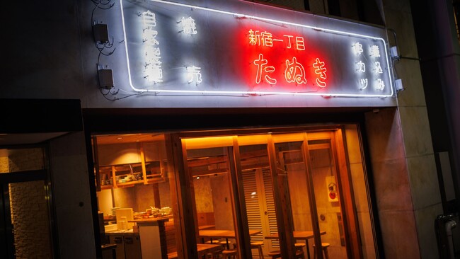 新たにオープンする「新宿一丁目たぬき」は、食べログ評価3.50 / Google口コミ4.4を獲得する青山一丁目の人気大衆酒場「青山一丁目たぬき」の姉妹店です。