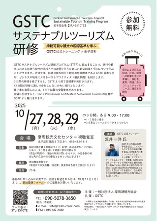 一般社団法人摩周湖観光協会(会長:渡辺 隆幸)は、持続可能な観光に関する国際基準を学ぶ研修会を開催します。国際基準の考え方や実践方法など、普段の仕事や暮らしにも活かせるSDGsの視点が詰まった3日間の短期集中研修です。参加者には「GSTC(世界持続可能観光協議会)」より修了書が交付されます。