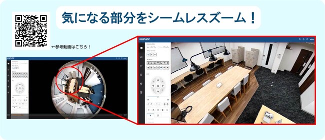 ・360°パノラマ画像を自由に展開表示!シームレスズーム機能で、詳細を確認したい部分を簡単に拡大することが可能。