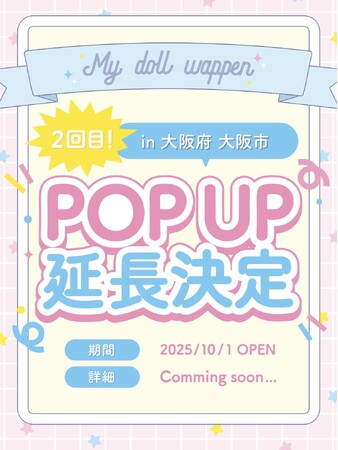 株式会社CREA WORKS(本社:東京都墨田区、代表取締役:国松久益)が展開する「My fave(マイフェイブ)」の大人気サービス 「マイドールワッペン」 の大阪POPUPがご好評につき、移転延長する運びとなりました。