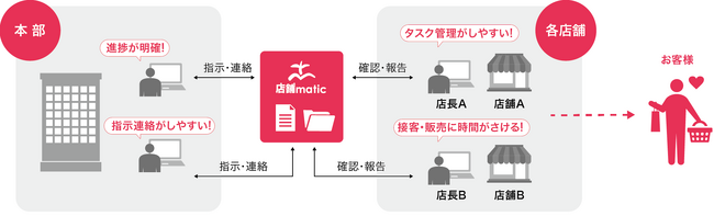「店舗matic」を活用した、本部・店舗間のコミュニケーションイメージ