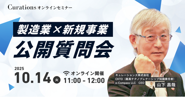 顧客企業のビジネス変革を成功に導くキュレーションズ株式会社(本社:東京都渋谷区、担当:野崎、以下当社)は、「製造業×新規事業 公開質問会」を2025年10月14日(火)に開催いたします。