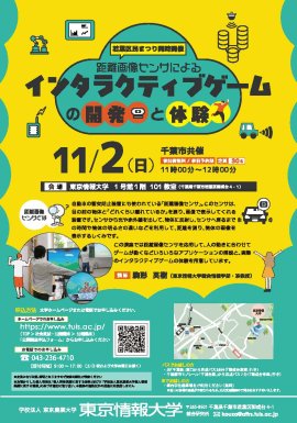 東京情報大学(設置者:学校法人東京農業大学)では、地域住民の皆様に東京情報大学の学びに触れていただく機会として、「距離画像センサによるインタラクティブゲームの開発と体験」をテーマに公開講座を開催します。