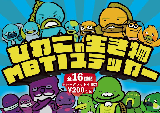琵琶湖に暮らす生きものとMBTI(性格タイプ)を組み合わせたキャラクターのオリジナルシールが当たる会場限定ガチャです。