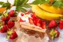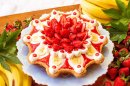 バナナ風味のレアチーズケーキにたっぷりのクリーム、イチゴをふんだんに使用し贅沢なショートケーキをイメージしたタルトを作りました。爽やかなイチゴの酸味とバナナの甘み、クリーミーなレアチーズの味わいは一度食べたらとまらない美味しさです。