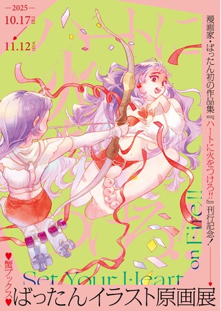 株式会社トゥーヴァージンズ(東京都千代田区)は、2025 年 10 月 17 日(金)より書籍『ハートに火をつけろ!! ばったんイラスト+コミック作品集』(ばったん著)のイラスト原画展を、高円寺・蟹ブックスにて開催するとともに、出版記念オリジナルグッズを販売いたします。