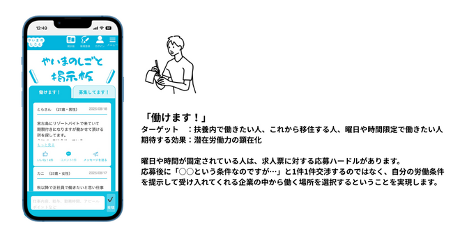 やいまの掲示板は自分の働ける時間を投稿し、その条件を承諾した事業者からスカウトを貰う仕組です。