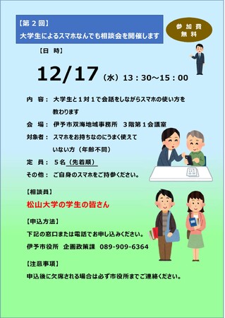 【愛媛県伊予市】「いまさら聞けない…」も大歓迎!大学生サポーターが優しく導くスマホ何でも相談会を開催します!