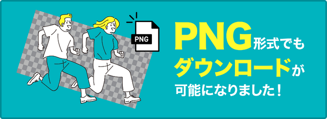 素材の情報欄に「JPG+PNG」の記載があるコンテンツはPNG形式でのダウンロードが可能です。[画像2: https://prcdn.freetls.fastly.net/release_image/7979/70/7979-70-9940f59afb95963e114342e269beb6fa-1441x618.jpg?width=536&quality=85%2C75&format=jpeg&auto=webp&fit=bounds&bg-color=fff ]