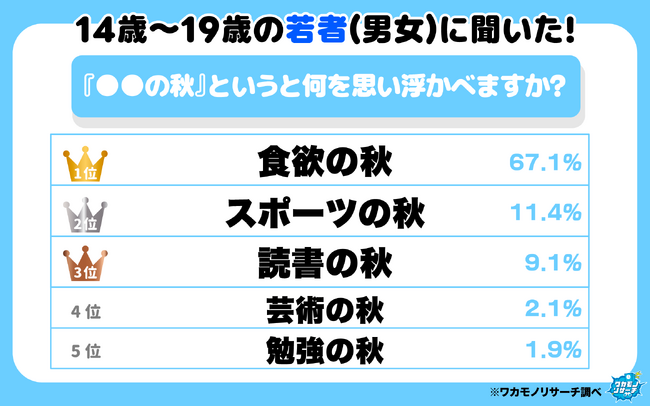 全国の14歳~19歳の若者(男女)に「●●の秋といえば何か?」という調査を実施しました
