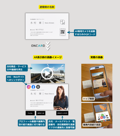 1枚の紙の名刺や広告がプレゼン資料やホームページ並みの紹介ツールに変化。ARで新しい伝え方を実現する「ONCARD」2025年9月に正式リリース!