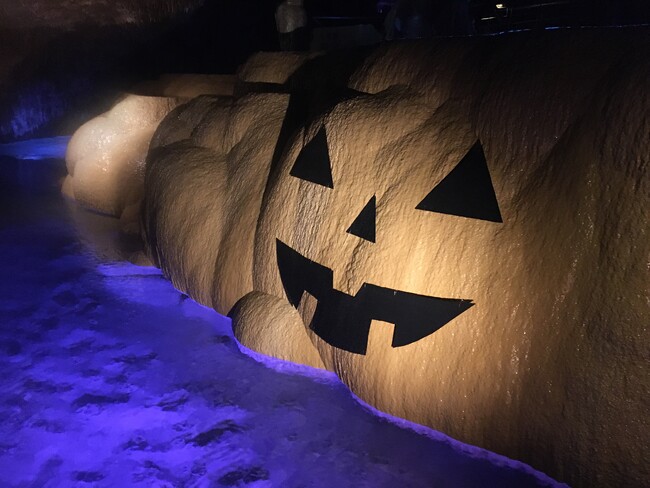 見どころ:鍾乳石の巨大なジャック・オー・ランタン、ハロウィンライトアップ