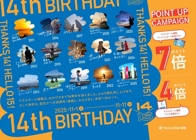 ・14周年記念キャンペーン特設サイト:https://shonan.terracemall.com/2025birthday/ (10月23日公開)