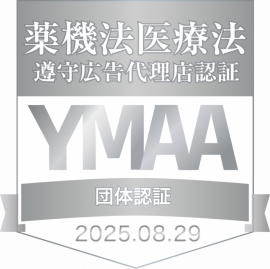 YMAA団体認証マーク制度は、一般社団法人薬機法医療法規格協会が、薬機法、医療法について、遵法に広告を行っている事業者に対して提供している認証制度です。一企業に一定数以上のYMAA個人認証資格者が在籍することが求められます。