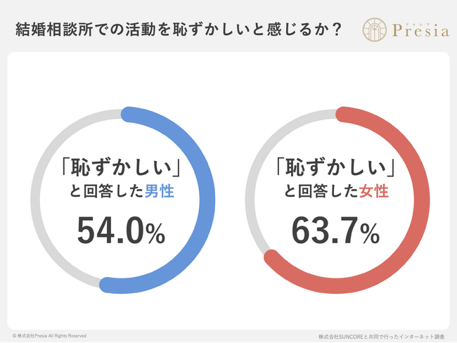 - 未婚男女の59.5%が、結婚相談所での活動を「恥ずかしい」と感じている