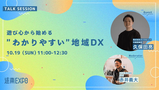 2025年10月18日(土)・19日(日)に開催される「道南EXPO 2025」にて、株式会社メイカヒット代表の久保田 亮が登壇し、「遊び心から始めるわかりやすい地域DX」をテーマにトークセッションを実施します。