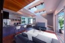非日常空間をテーマにした隠れ家宿のような 2 棟の住宅です。「旅心土間」と「陰影礼賛」と題したコンセプトがあり、「旅心土間」は、通り土間をイメージしたタイル張りのリビングと大きな吹き抜けが特徴で、旅先やカフェにいるような非日常感を演出します。「陰影礼賛」は、坪庭や天窓からの柔らかな自然光が作り出す陰影と、建築照明によるきらびやかな空間演出を楽しめます。町家建築の見直しに取り組んだ作品になります。