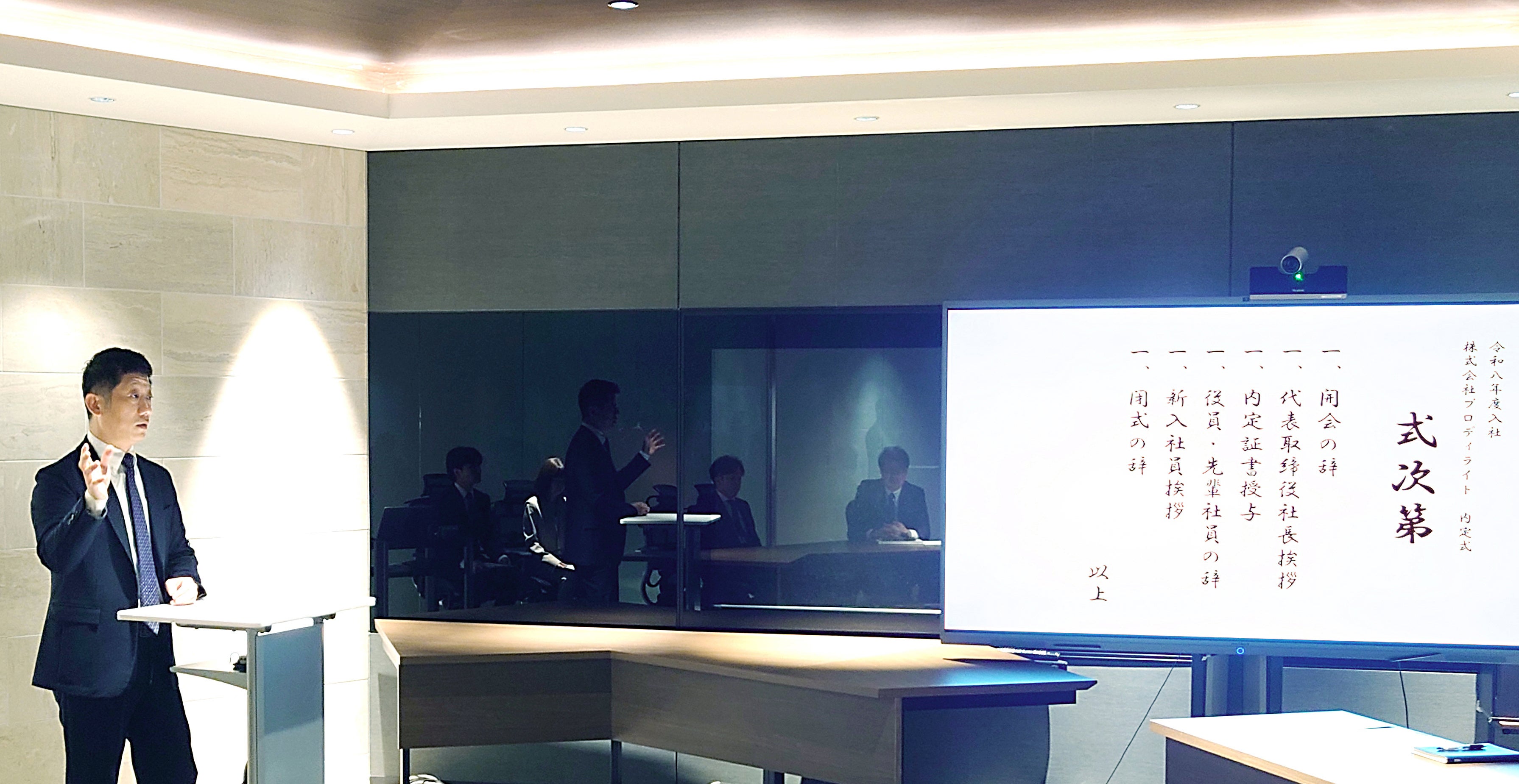 企業理念「日々挑戦」を掲げ、プロディライト初の内定式を実施。