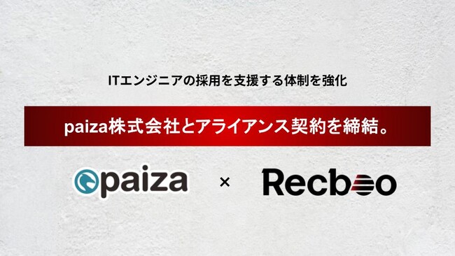 【Recboo】paiza株式会社とアライアンス契約を締結。ITエンジニアの採用を支援する体制を強化。
