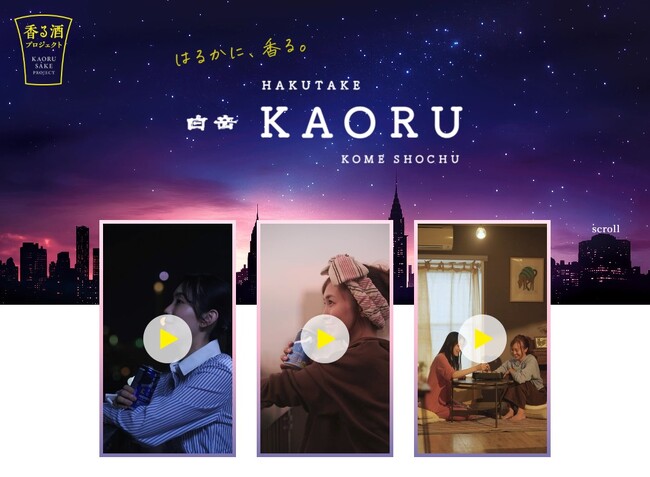 スマートフォン視聴を前提とした3本のショートムービーでは、熊本出身で東京に暮らす同級生「カオル」と「ハルカ」がルームシェアをしながら、忙しい日々の中で「白岳KAORU」とともに心をほどく瞬間を描いています。都会で働く20~30代女性をメインターゲットに、香りで心を癒す“新しい焼酎の楽しみ方”をご提案します。
