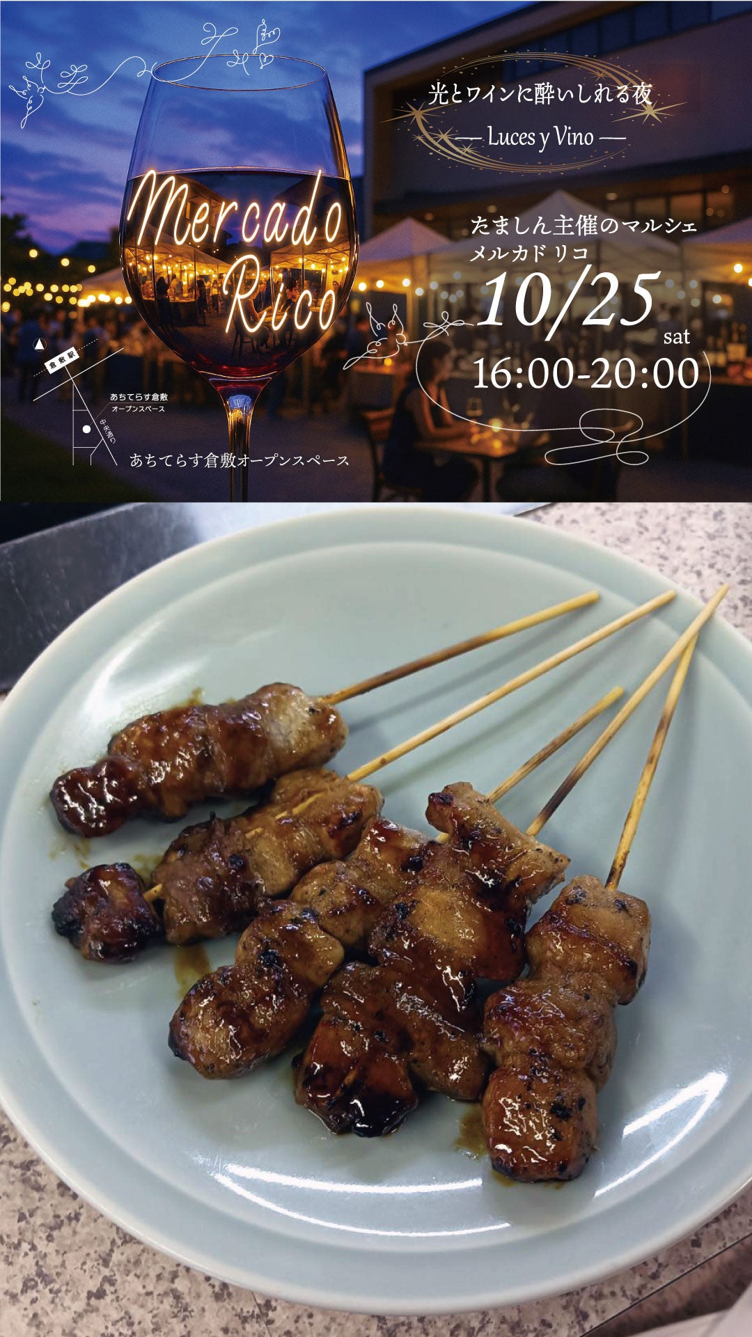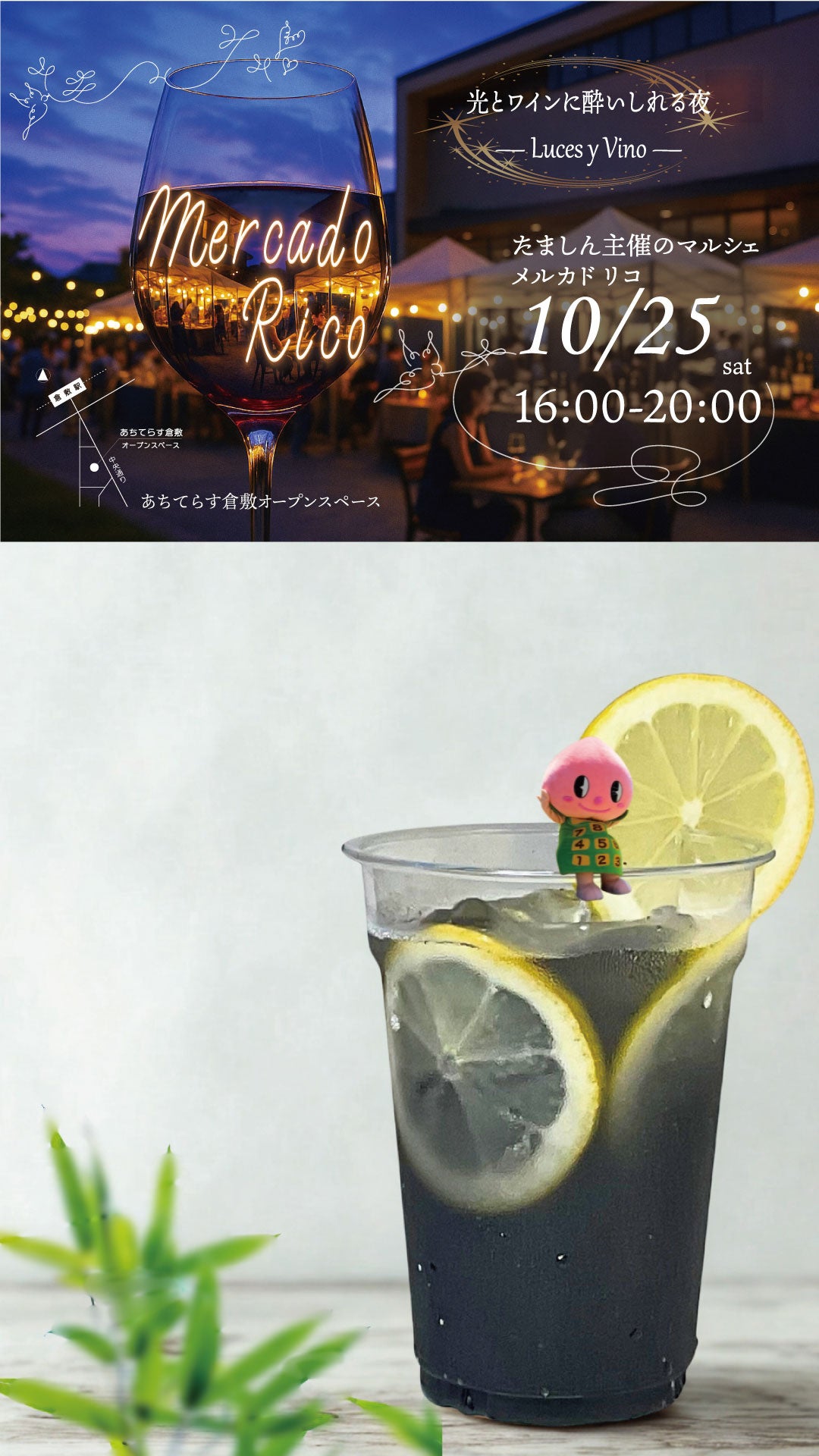 たましん主催のマルシェ「メルカドリコ」は、あちてらす倉敷オープン・スペースを舞台に、あなたを豊かな夜へと誘います。