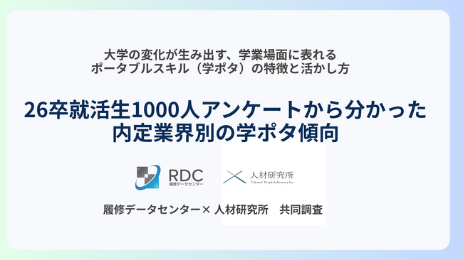 2025年4月、株式会社履修データセンターと株式会社人材研究所が共同で、学生の学業場面に表れるポータブルスキル(以下「学ポタ」)に関する調査を実施しました。