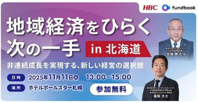 HBC北海道放送は、M&A仲介サービスの株式会社fundbook(東京都港区)と共同で、「M&A」を企業の成長戦略と地域貢献のための有力な手段ととらえた経営戦略セミナーを、11月11日(火)にホテルポールスター札幌(札幌市中央区)で開催します。