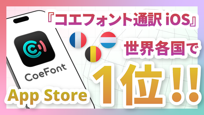 AI音声プラットフォーム「CoeFont」を提供する株式会社CoeFont(本社:東京都港区、代表取締役:早川 尚吾、以下当社)は、国内発のAIライブ翻訳サービス「CoeFont通訳」が、世界各国のApp Storeランキングで1位を含む上位にランクインしたことをお知らせします。