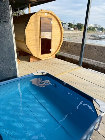 水上バイクで高まった熱気を、木の香り漂うバレルサウナで落ち着かせ、