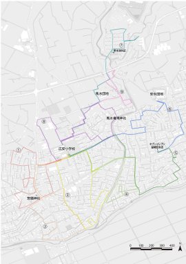 9:10~11:00(110分) ・まち歩き開始(約2.5キロ)、小学校に戻る