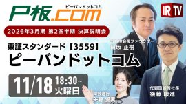 ・株式会社ピーバンドットコム IRページ:https://www.p-ban.com/corporate/ir/