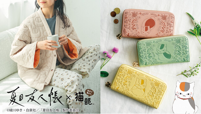 夏目友人帳×フェリシモ「猫部(TM)」に秋冬の新作が登場! ニャンコ先生とあったまる「ふかふかキルティングはんてん」と、幸運を招くお守りのような「ニャンコ先生と草花の型押し長財布」