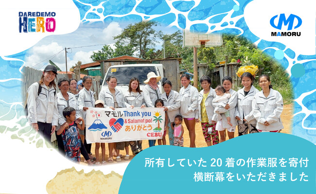 「街をマモル。人をマモル。そして、話せる気楽さもマモル。」をコンセプトに掲げる株式会社マモル(所在地:東京都世田谷区、代表者:新舘 豊晃、以下当社)は、DAREDEMO HEROボランティア団体を通して、セブ島へ20着の作業着を寄付し、手作りの横断幕を贈呈いただきましたことをお知らせいたします。