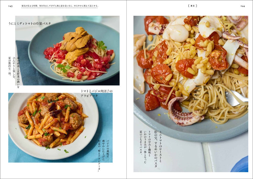 ひと皿で栄養バランスが整うので、子育てや介護、仕事で忙しい方にも実践しやすいのが魅力。シンプルな普段使いのパスタから、特別感を味わえるごちそうパスタまで、季節と心身の変化に寄り添った一冊です。